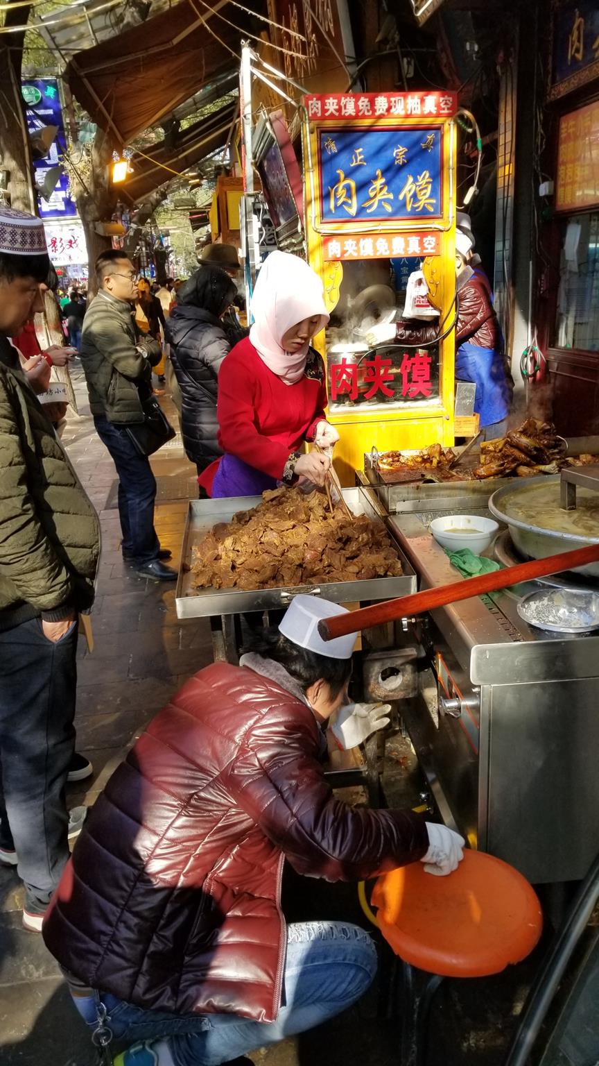 For most people, the only point of visiting here is for the food. A distinct dish can be translated to crumbled unleavened bread in Mutton Stew (Yangrou Paomo) can be found in practically every small restaurant tucked away in the street, along with vendors offering pomegranate juice, fried persimmon deserts, stuffed buns and the standard lamb/beef/variety of seafood kebabs. Various tourist traps were also present, selling overpriced trinkets and the like that I didn’t really bother spending too much time on. The smells however were truly intoxicating – you wanted to try basically everything you saw, but it was simply way too much food. I would definitely like to come back at some point in the future to try the stuff I couldn’t today, the myriad of distinct flavors with all of them being tasty was just way too good. Thankfully, the more I progressed into the neighborhood the less crowded it became, and I was able to sample the items I wanted.