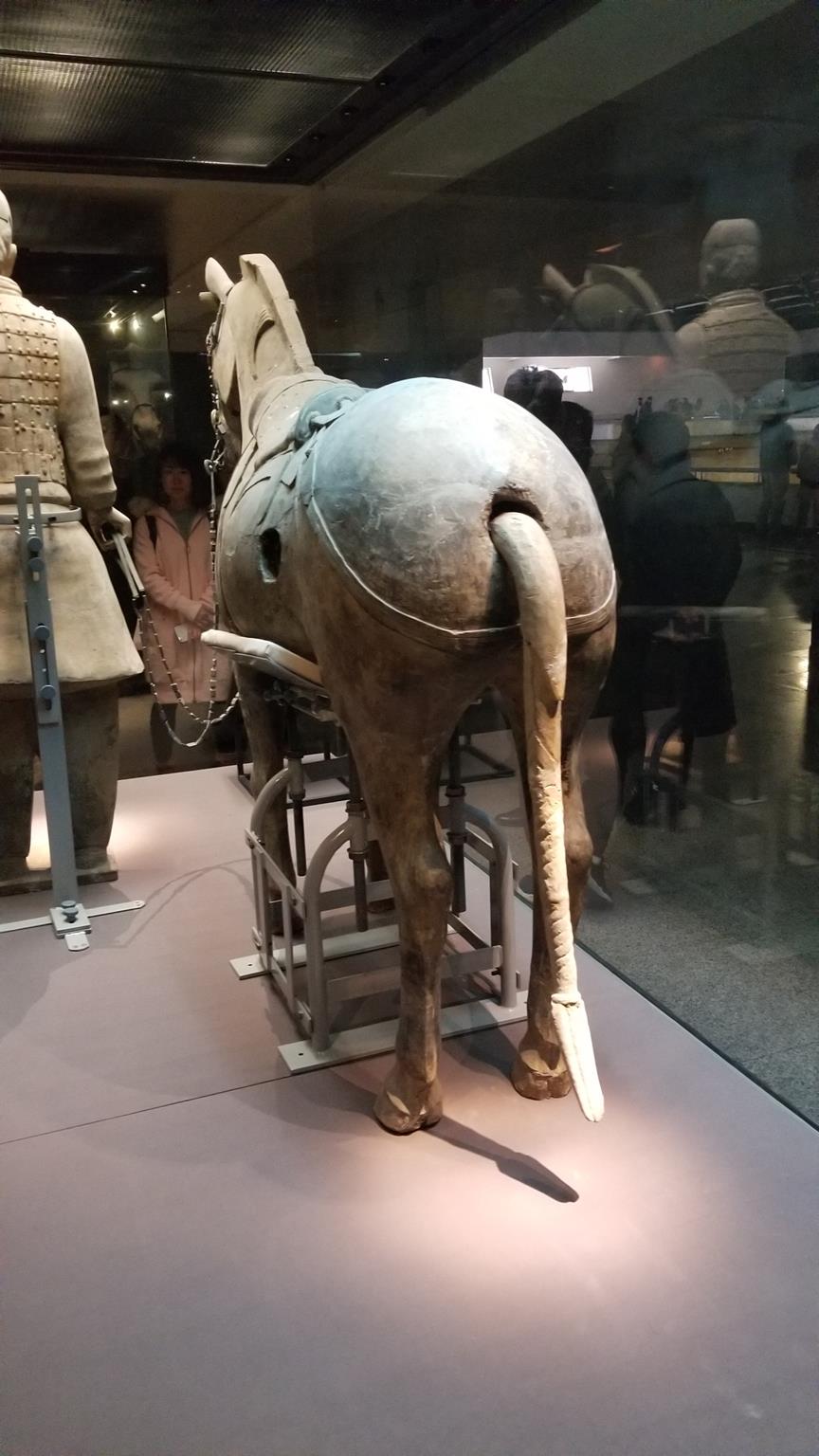 The second pit contained the most comprehensive and complete collection of the units that would have existed in the actual army, with numerous horses, chariots, and archers. Individual soldiers that were kept in better condition were in their own display cases for closer inspection. You could also find different types of each unit, archers that either stood up or knelt, as well as the generals who were behemoths compared to the already larger than life sized soldiers (the shortest one found was 1.78m, with an average height of 1.9m).